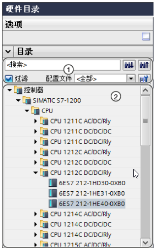 “目录”(Catalog) 窗格中的组件选型以树形结构显示各种硬件组件。可以将所需的设备或模块从目录中移动到设备视图或网络视图的图形工作区域。
