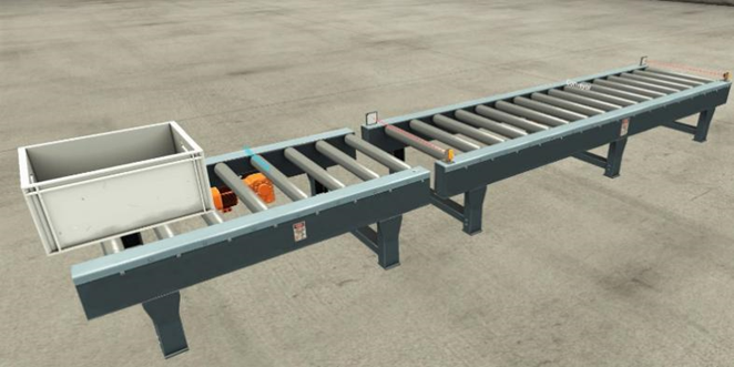 ①场景包含2个拼接在一起的传送带,左边为传送带1,右边为传送带2;