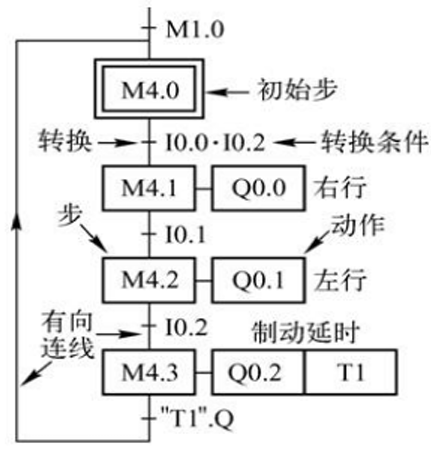 注意:两个步绝对不能直接相连,必须用一个转换将它们隔开; 两个转换也不能直接相连,必须用一个步将它们隔开; 初始步对应于系统等待起动的初始状态,初始步是必不可少的; 步和有向连线一般应组成闭环。