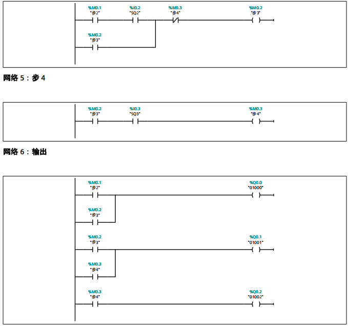 转换条件位于各个步之间,并包含从一步切换到下一步(步使能)的条件。 如果满足步使能的转换条件,则将激活下一步,并执行其动作。 在 LAD 或 FBD 中,可以对转换条件进行编程。