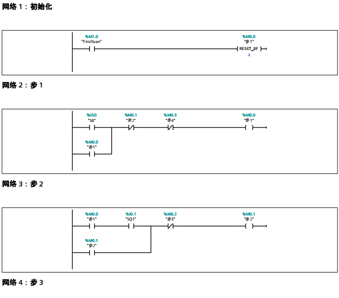 在一个步中可以对以下元素进行编程:互锁条件、监控条件、动作