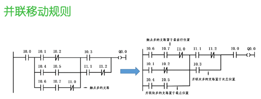 我们总结成并联移动规则、程序行的规则、短接处理规则、元件次数规则。下面进行分类说明。