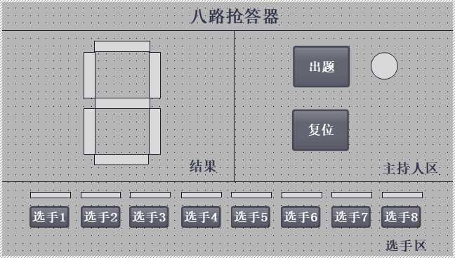 2、如果开始抢答后12s内无人应答,则该题作废,此时按任何一个抢答按钮均无效。按复位按钮后,方可进行新一轮抢答。