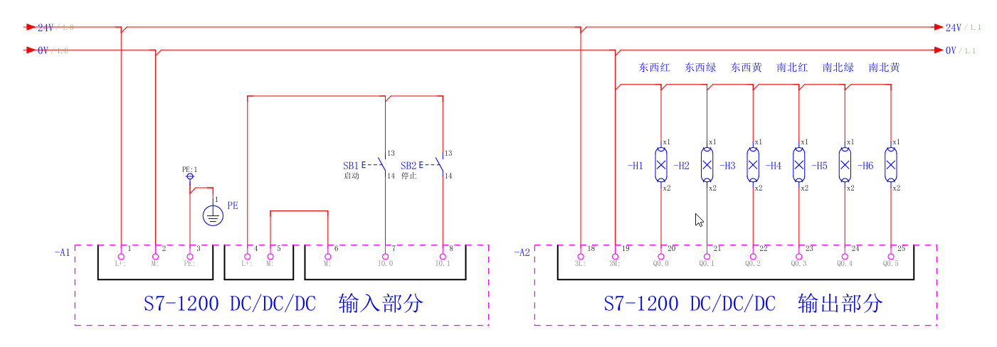 交通信号灯受一个启动按钮控制,当启动按钮接通时,交通信号灯系统开始工作。
