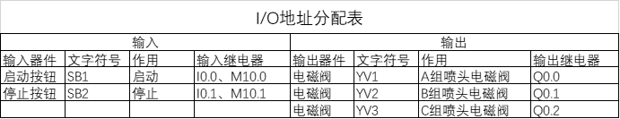根据前面的分析,长时限的延时控制要求,因此需要用到基本位逻辑指令和定时器+计数器组合来完成。本任务中,控制信号和被控信号分别有2、3个,S7-1200就可以满足需求,同时对I/O地址进行分配,如下表所示。