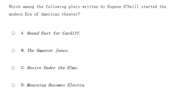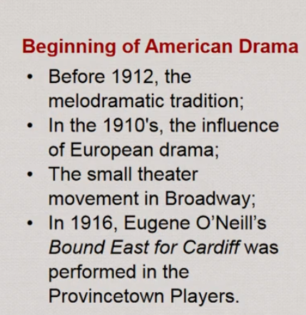 * Bound East for Cardiff 《东航卡迪夫》标志着美国戏剧时代的开始, Eugene O'Neil成为美国戏剧之父 The Father of American Drama