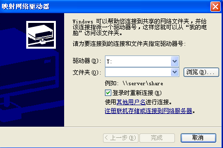 5.桌面右击“我的电脑”或“网上邻居”,选择“映射网络驱动器”,单击“浏览”按钮后找到共享文件夹后确定即可完成。