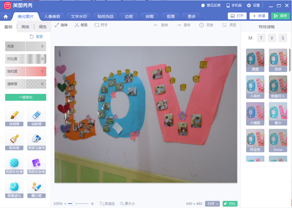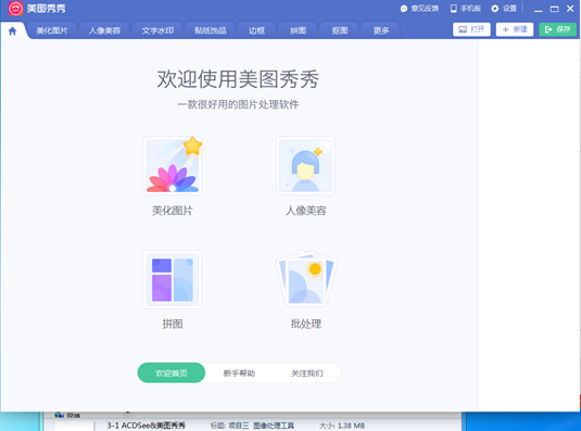 1.简介:美图秀秀是一款简单好用的免费图片处理软件,独有的图片特效、美容、饰品、边框、场景、拼图等功能。