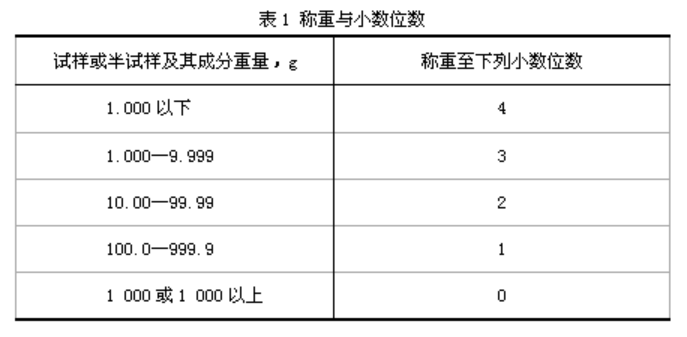 当试样分至接近规定的最低重量时即可称重,以g表示。试样称重的精确度见下表。