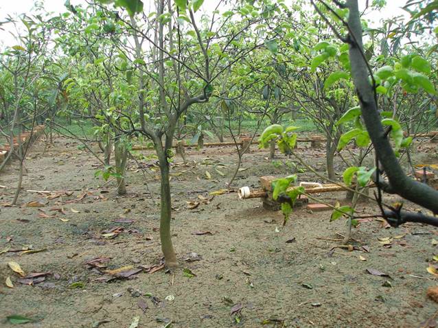 在果园、山林中间地段,选择避风平坦处立。地面铺沙土或浇筑水