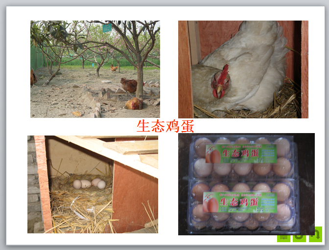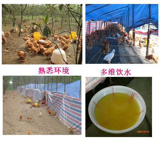 •为防应激,可在饲料或饮水中加入维生素C或复合维生素等。•雏鸡放养3~4天进行调教,使其形成良好的反射。•雏鸡放人果园、山林前5天,料槽和饮水器放在距鸡舍约1米处,使其熟悉环境,仍按正常育雏方式饲喂,以后可逐渐减少饲喂次数。•天气晴好时,清晨将鸡群放出鸡舍,傍晚将鸡群赶回舍内。