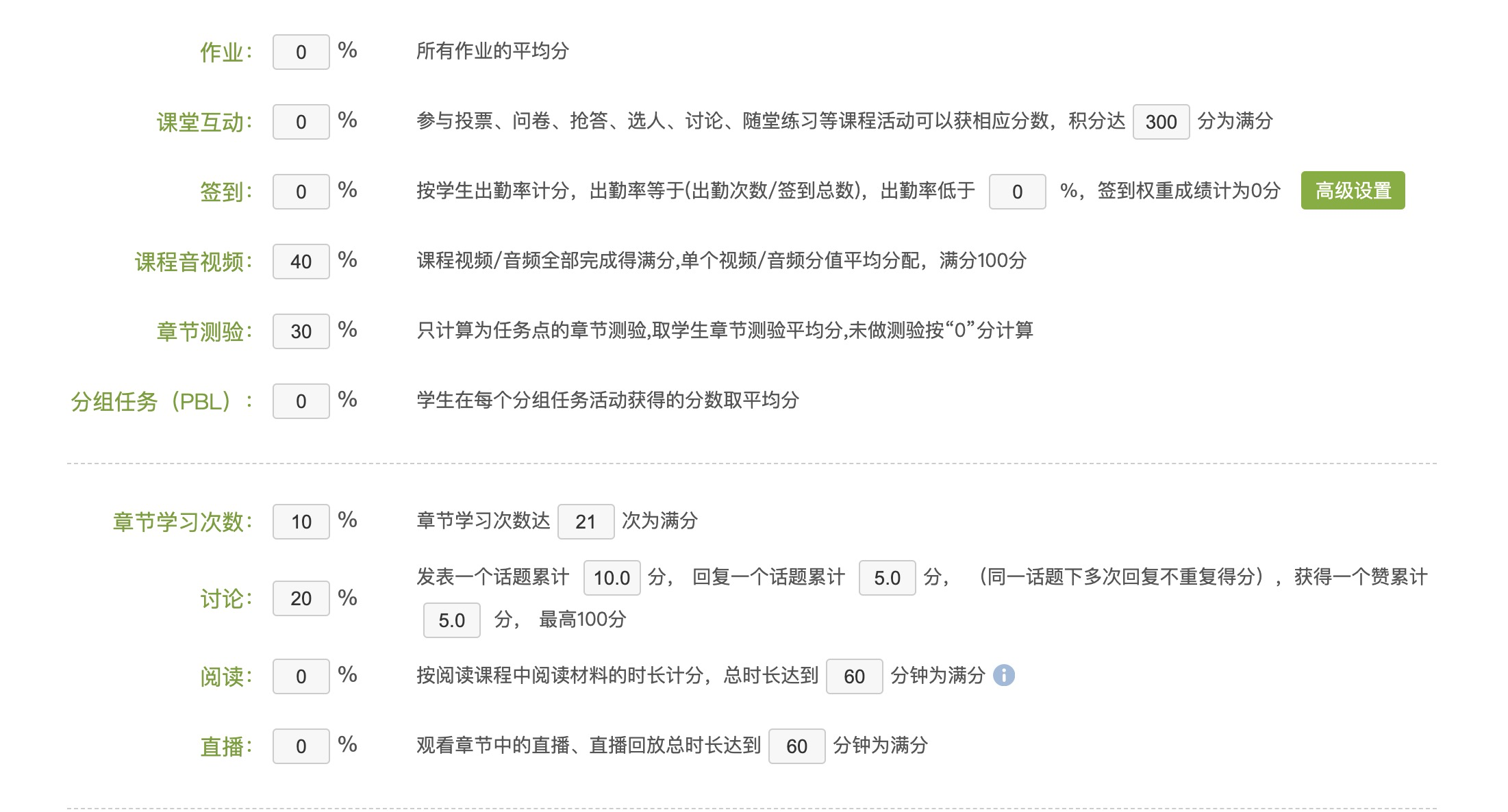 “学习通”成绩权重比例说明
