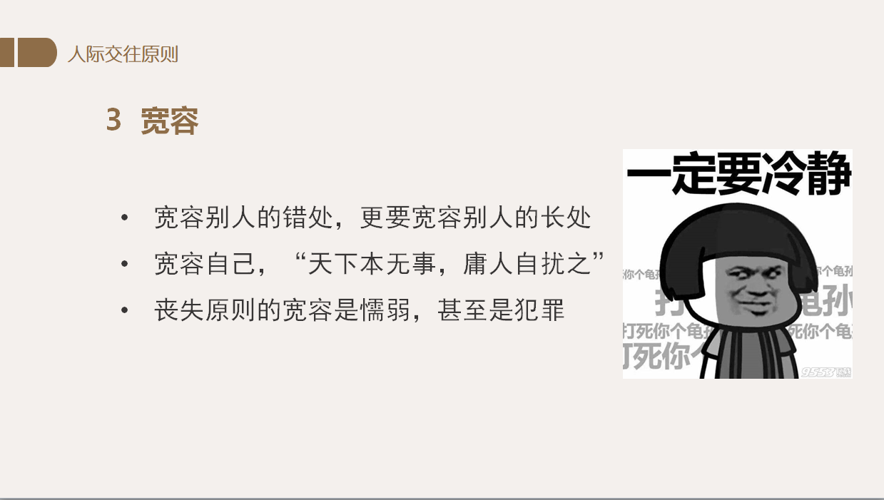 在交往中要尊重别人与自己的不同,尊重他人的独特性,平等交往,才能使彼此感到安全、放松。