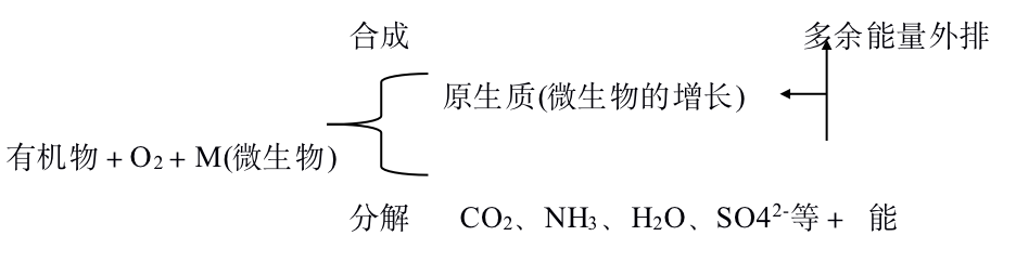 过程:好氧微生物以废水中的各种有机物(胶状、溶解状)为营养源,经过一系列的生化反应,使有机物逐级放能,最终以低能位的无机物稳定下来,达到无害化的目的。具体过程可用下图表示: