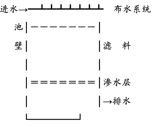 组成:池底、排水假底(渗水顶板)、集水沟。