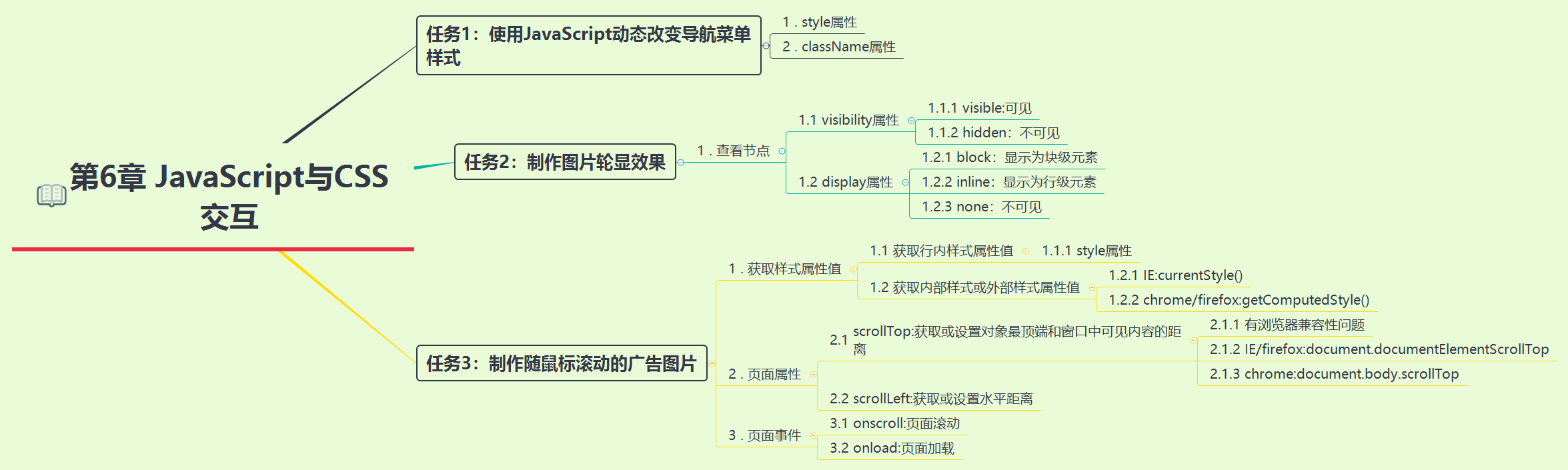 任务1:使用JavaScript动态改变导航菜单样式 任务2:制作图片轮播效果 任务3:制作鼠标滚动的广告图片效果 | |
