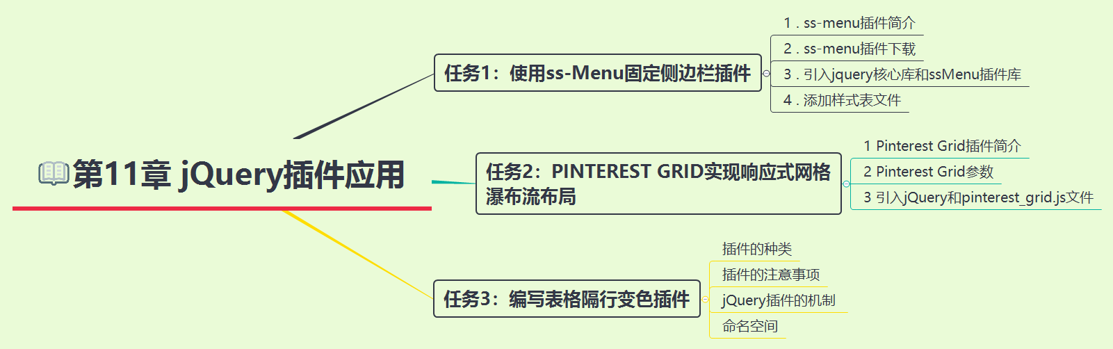 任务1:使用ss-Menu固定侧边栏插件 任务2:实现响应式网格瀑布流布局 任务3:编写表格隔行变色插件 | |