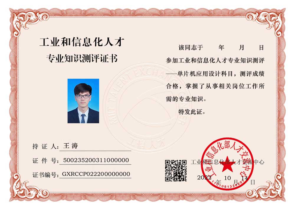 5.1 工业和信息化人才专业知识测评证书-单片机应用设计(初级、高级)