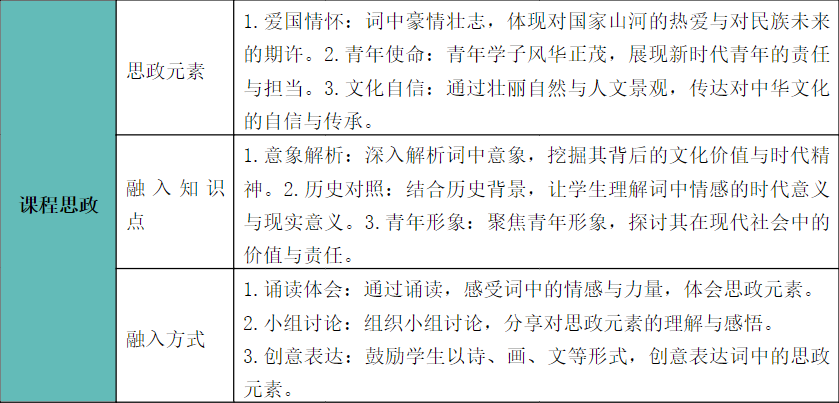 授课学生为高职宝玉石鉴定与加工专业一年级学生,学生已具备一定的语文基础,但部分学生语文基础相对薄弱,学习的主动性不够强。对《沁园春·长沙》的文本理解存在一定的难度。这首词中运用了丰富的意象和象征手法,需要学生具备一定的文学鉴赏能力和想象力。由于现代社会环境和历史背景的差异,学生可能难以与词中所表达的情感产生共鸣。这首词表达了毛泽东青年时代的壮志豪情和对国家命运的关切,而现代学生生活在和平年代,对革命历史了解不足。现代学生的审美标准和阅读习惯与《沁园春·长沙》所代表的经典审美有一定距离。如何在教学中引导学生体验这首词的美感,是教学中的一大挑战。