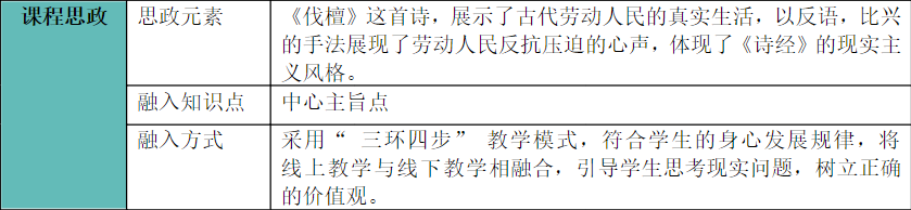 本课授课对象是职业学校高职一年级宝玉石鉴定与加工专业学生。该阶段学生有一定的古诗文阅 读鉴赏水平, 对《诗经》已经有了基本的了解,在初中阶段学过《蒹葭》《关雎》等经典篇目,通过 课前布置的课后整本书阅读任务,对《诗经》中其他篇目也有了一定的了解,通过结合注释进行课前 阅读对本课《伐檀》所写的内容和作者要表达的思想已经有了模糊的感知。这个专业的学生有较强的 审美感受力,对古诗文的学习热情较高,但需要教师进行进一步的引导来使模糊的感知变得清晰。
