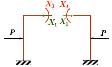 若外力反对称于结构对称轴,结构将产生反对称变形。