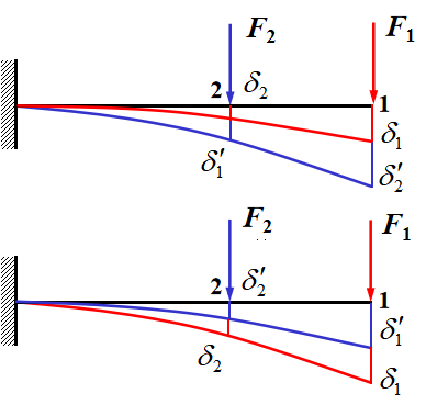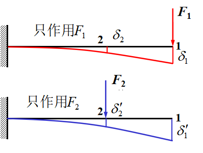 F1作用点沿F1方向因F2作用而引起的位移,等于F2作用点沿F2方向因F1作用而引起的位移。
