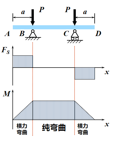 某段梁的内力只有弯矩没有剪力时,该段梁的变形称为纯弯曲。