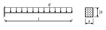 (3) 图示矩形截面梁,若均布荷载集度q=10kN/m,梁长l=3m,弹性模量E=200GPa,许用应力[σ]=120MPa,许用单位长度上的最大挠度值[wmax/l]=1/250,且已知截面高度h与宽度b之比为2,求截面尺寸。