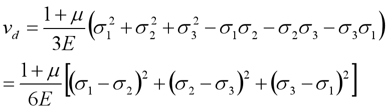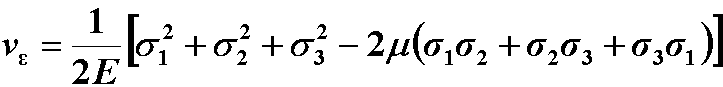 二、三个主应力同时存在时, 单元体的应变能密度为