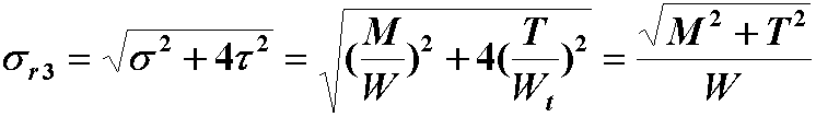 式中W为杆的抗弯截面系数。M,T分别为危险截面的弯矩和扭矩. 以上两式只适用于弯扭组合变形下的圆截面杆。