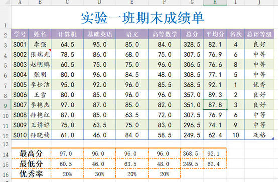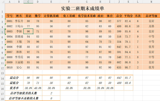 红叶工作室负责辅助明星学院进行成绩统计工作。每一位成员代理一个班级,首先按要求获得明星成绩单,并统计本班的平均分、总分、排名,各科的平均分、最高分、最低分,统计各分数段的人数及所占百分比。 思政融入点 让学生自行生成“明星”成绩单,表格中的明星人物是对学生起到正能量激励作用的人,激发学生的正能量,培养学生的阳光心理。