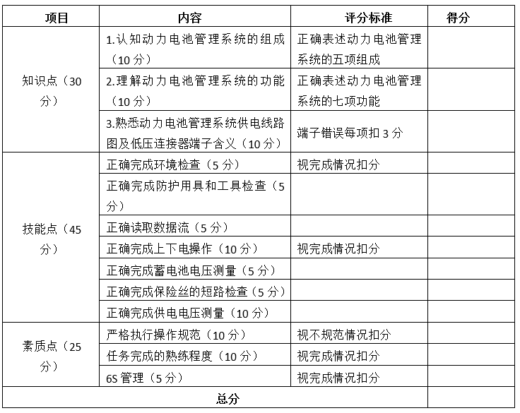 1)能够描述动力电池管理系统结构组成、类型和工作原理;