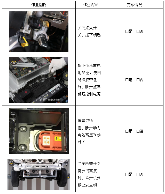 安全防护:做好车辆安全防护与隔离(车辆挡块、警示隔离带、高压危险警示牌)