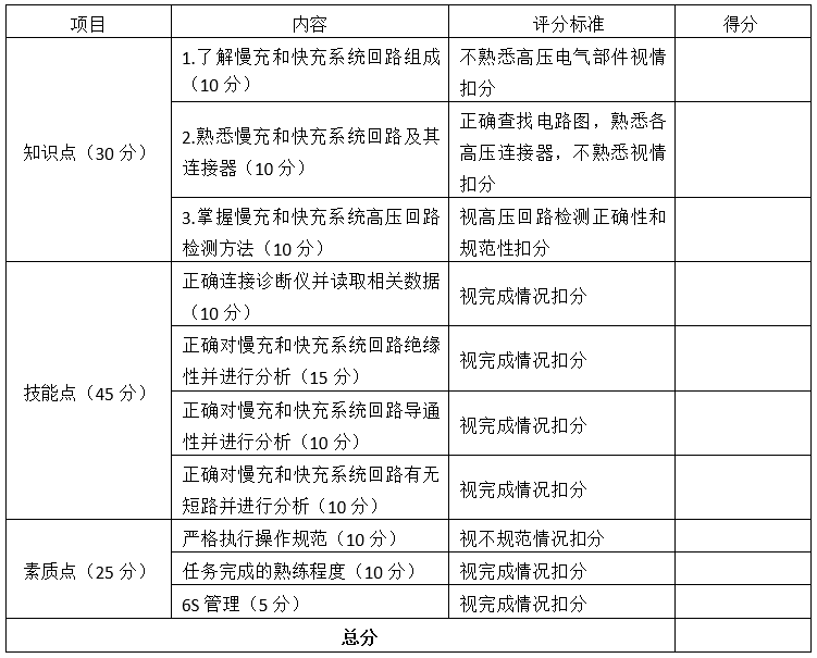 2)能够描述慢充和快充系统检修流程;