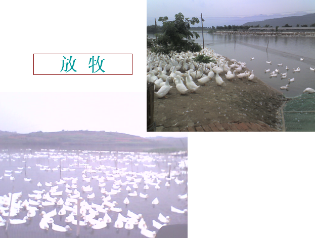 3、半舍饲 饲养固定在鸭舍、陆上运动场和水上运动场,不外出