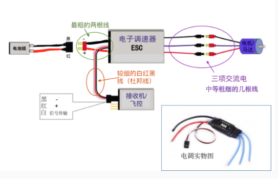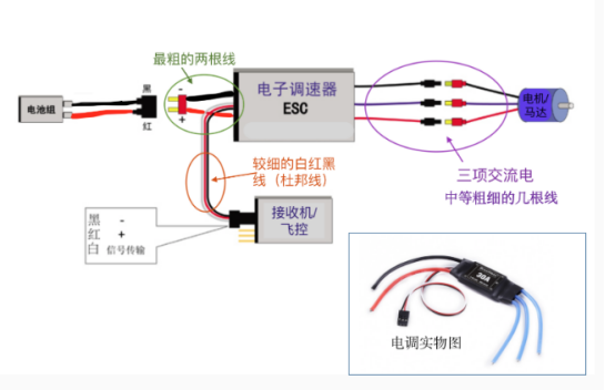 C 三相交流电机通过交流电调将电池直流变成交流作为电机输入