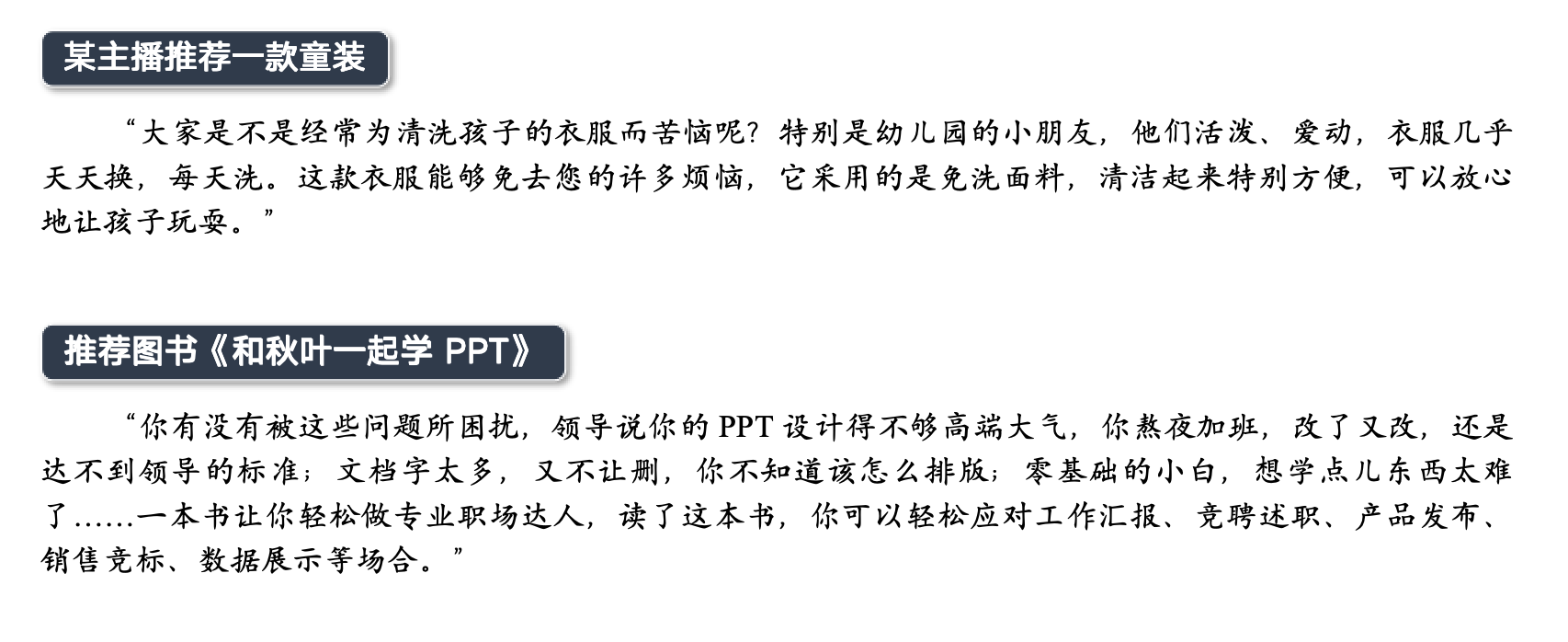 主播在直播间讲解商品时,对于那些无法直观展示的内容可以通过场景式描述引发用户的联想,充分激发用户的想象力,从而加深用户对商品的认知,引导用户下单购买。