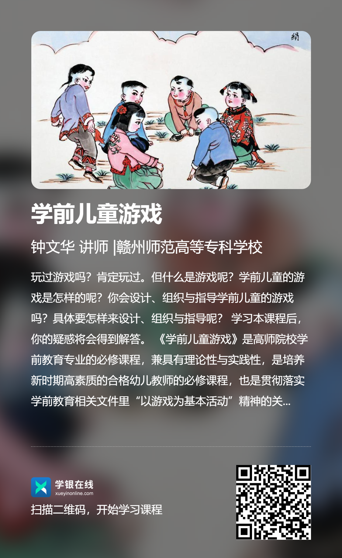 《学前儿童游戏》课程 第9期次课 公开班级(学习通APP扫下面的码或输入邀请码:54462406,进入班级)
