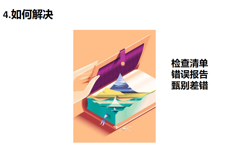 我们看一看,这第一个叫检查清单,第二个叫错误报告,第三个叫甄别差错。那其实这里面最重要的讲的就是关于如何通过设计上去预防错误,比如第一个叫增加约束以阻止操作发生,对吧?这个是我们上一章还提到过的,第二叫撤销,比如说可以撤销,可以反悔,就这个意思