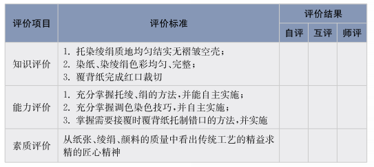 能力目标:通过学习熟练掌握书画装裱修复配料托制、染制的几种基本方法,能够独立托制和染制纸、绫、绢。