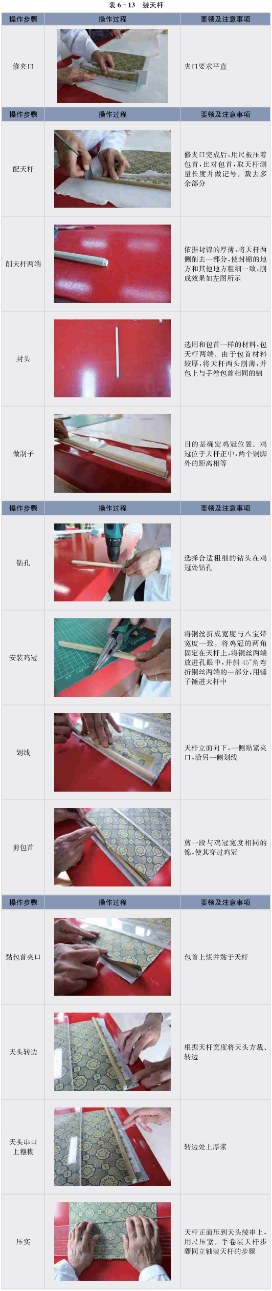 玉别子一个,玉片两个,天杆(米贴)一根,棕刷两把,排笔一把,隔糊板一块,尺板若干,裁板若干,马蹄刀一把,针锥一个,川蜡一块,砑石一块。