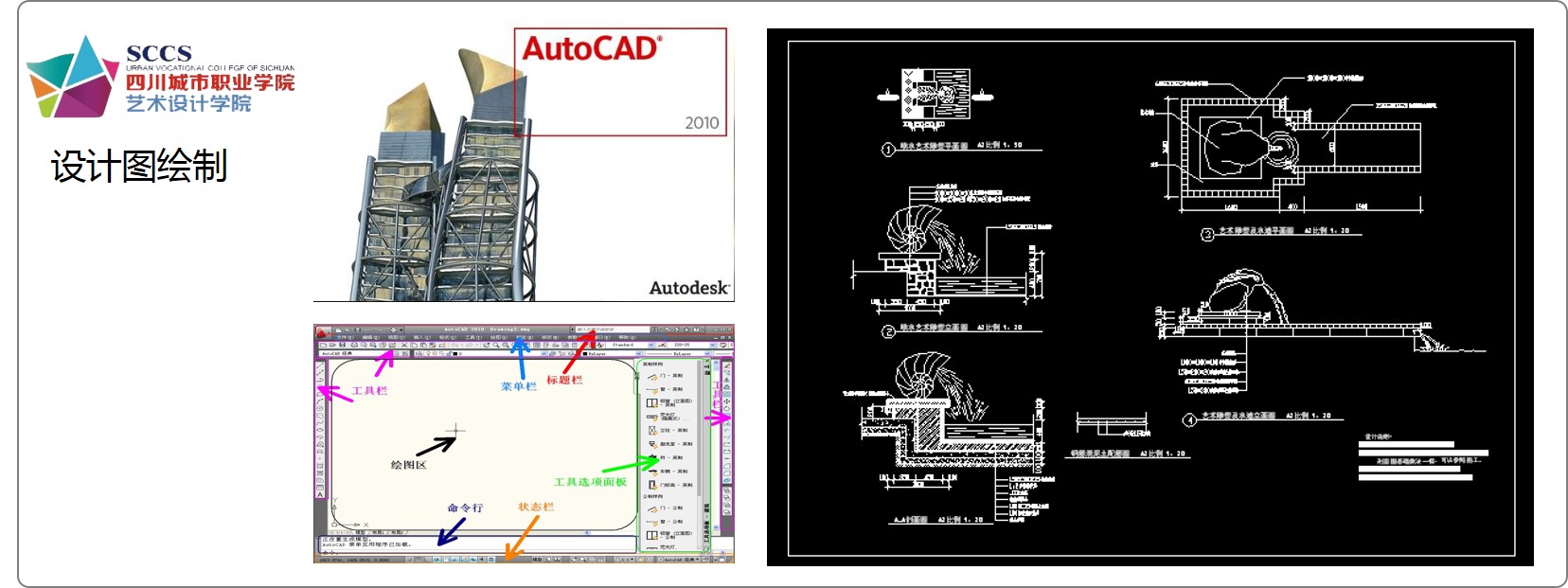 该工作任务是庭院景观绿化水景设计方案的图纸表现部分,每一个设计想法的表现都需要通过图纸进行表达,因此在本工作任务的学习中,需要同学们熟练运用AUTOCAD软件。同时完成的CAD的图纸将会影响下一次工作任务效果图表现。建议同学在使用中请安装2010以上版本的软件,有利于景观绿化水景设计图的绘制。