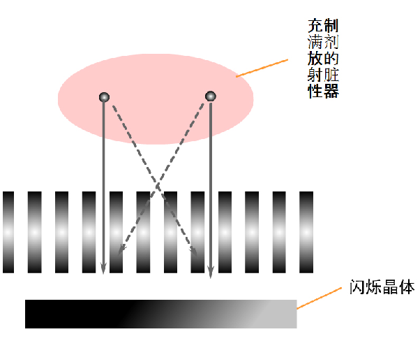 仅局限于某一空间单元的射线能进入闪烁计数器,其他区域射线不得进入,排除干扰成像的射线,建立放射性核素与图像的空间对应关系。