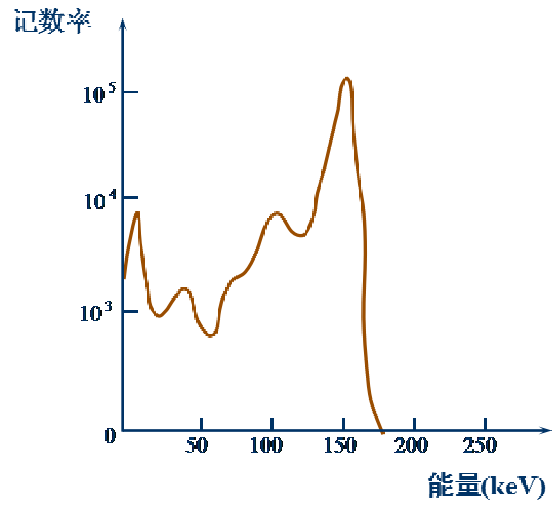 每一种放射性核素都有自己特有的辐射能谱。闪烁计数器产生的电流脉冲幅度和辐射光子能量成正比,测出脉冲幅度与计数关系曲线就等于测出辐射能谱。