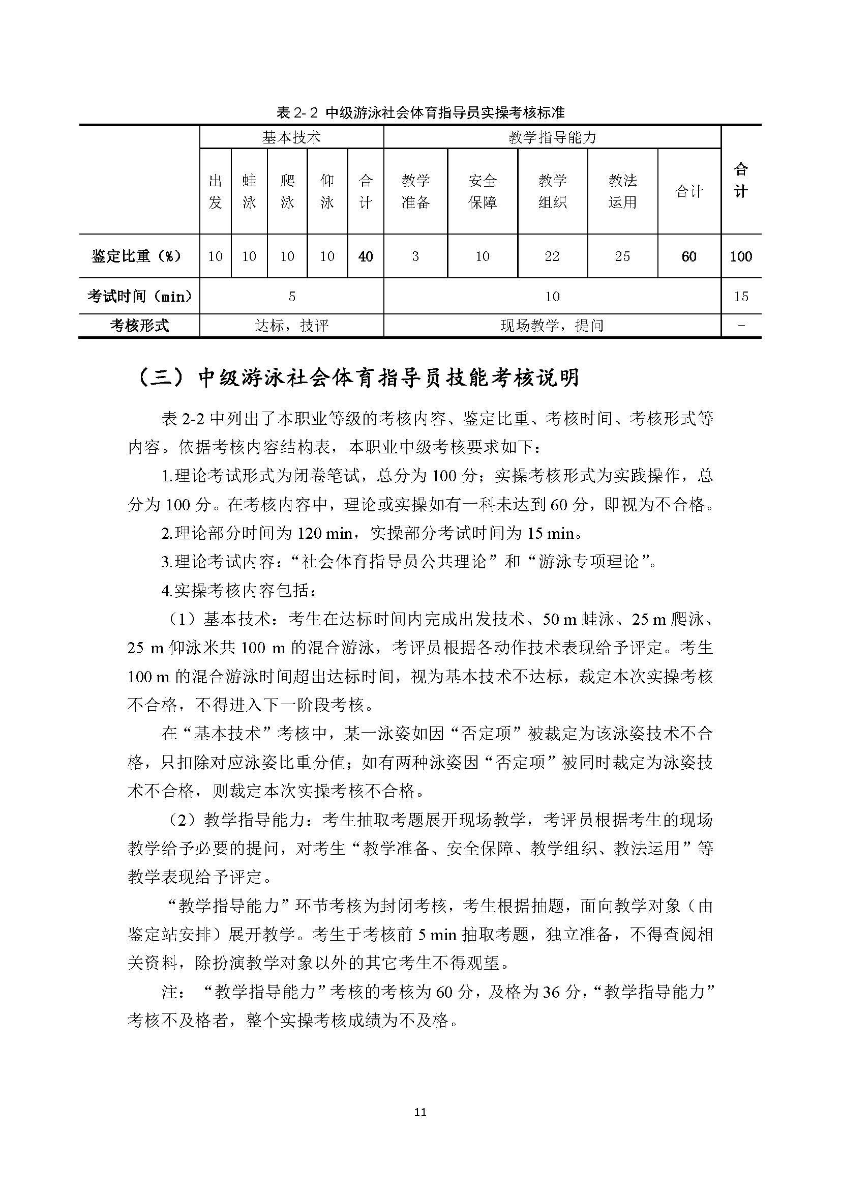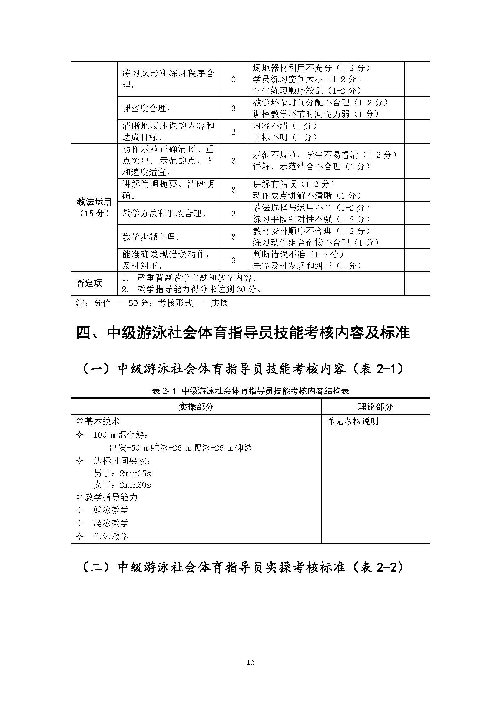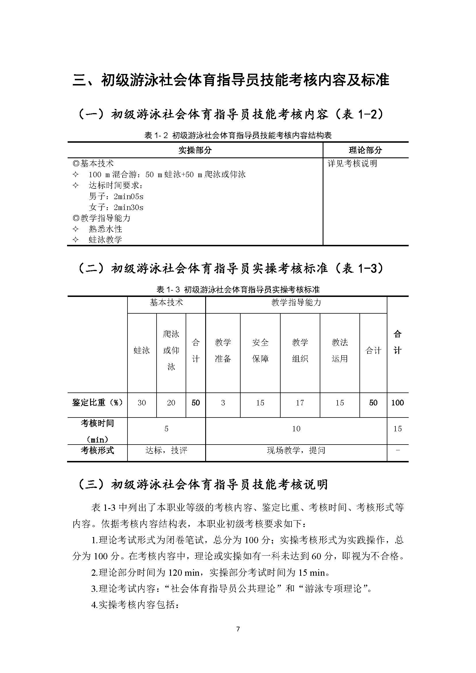 (一)初级游泳社会体育指导员技能考核内容(表1-1)