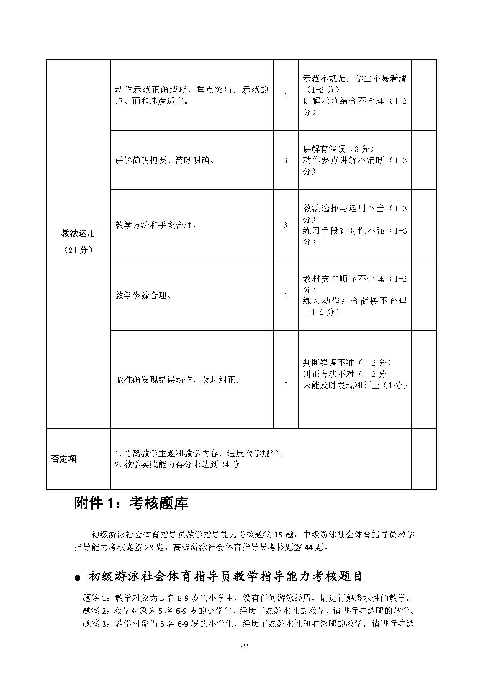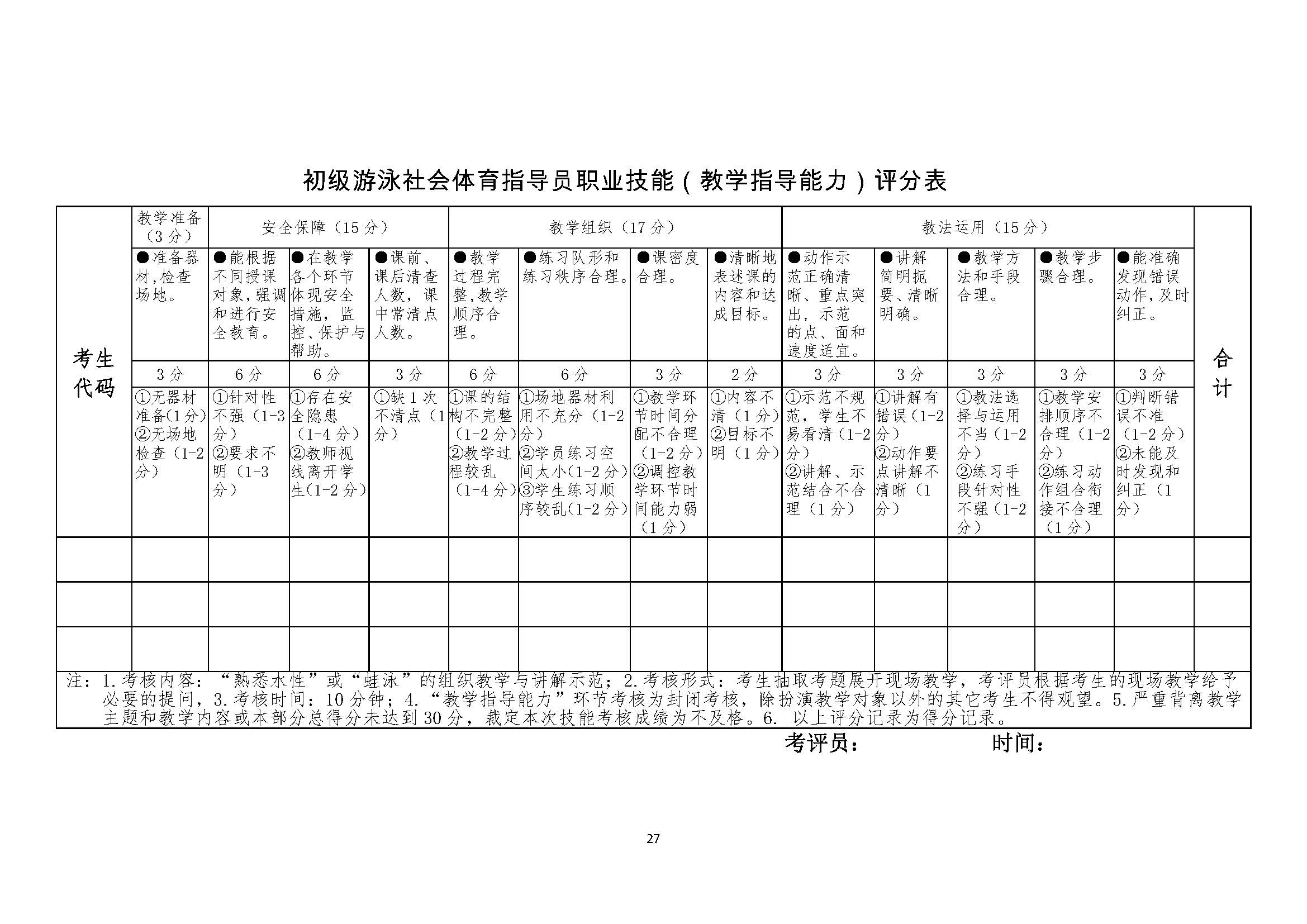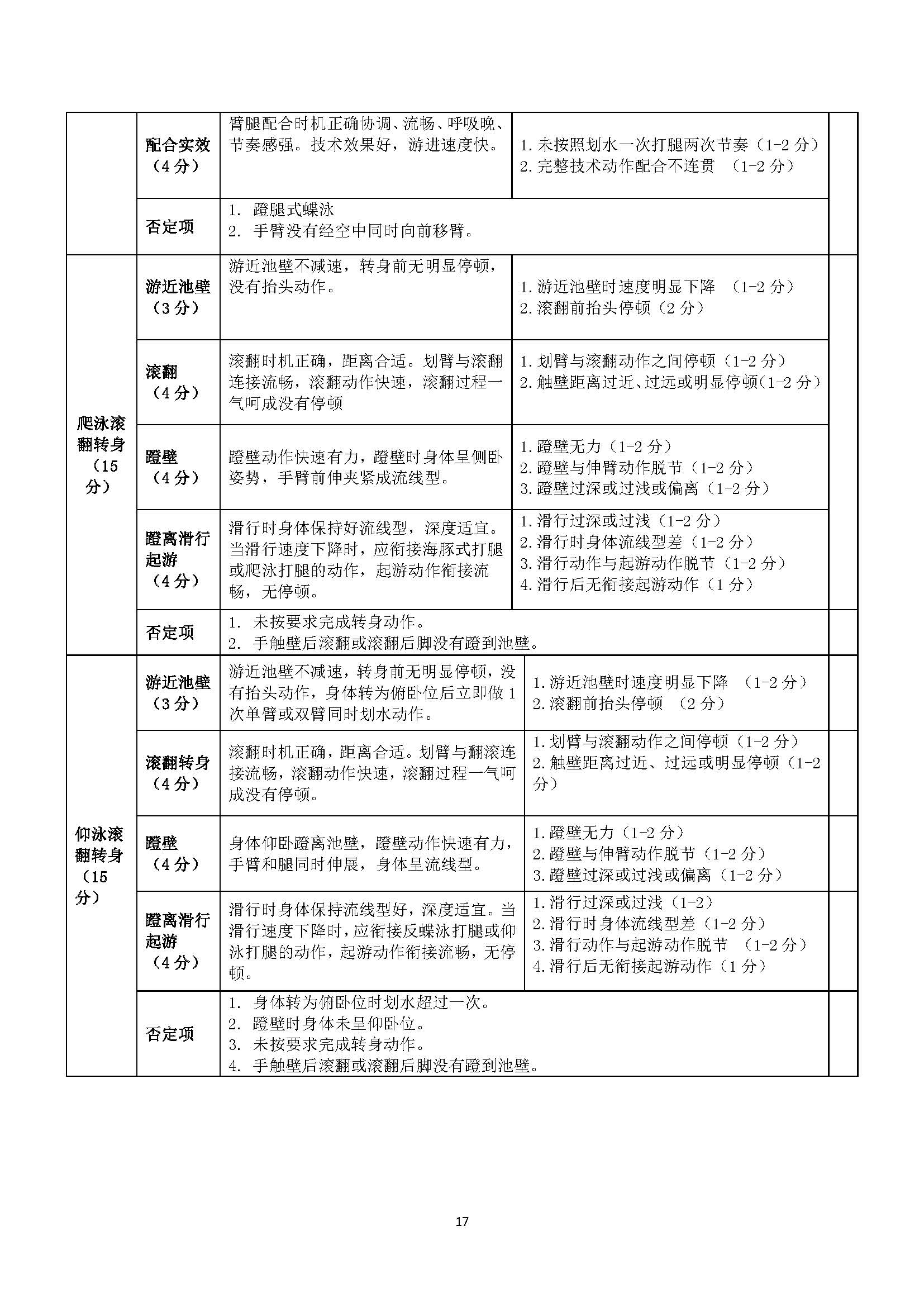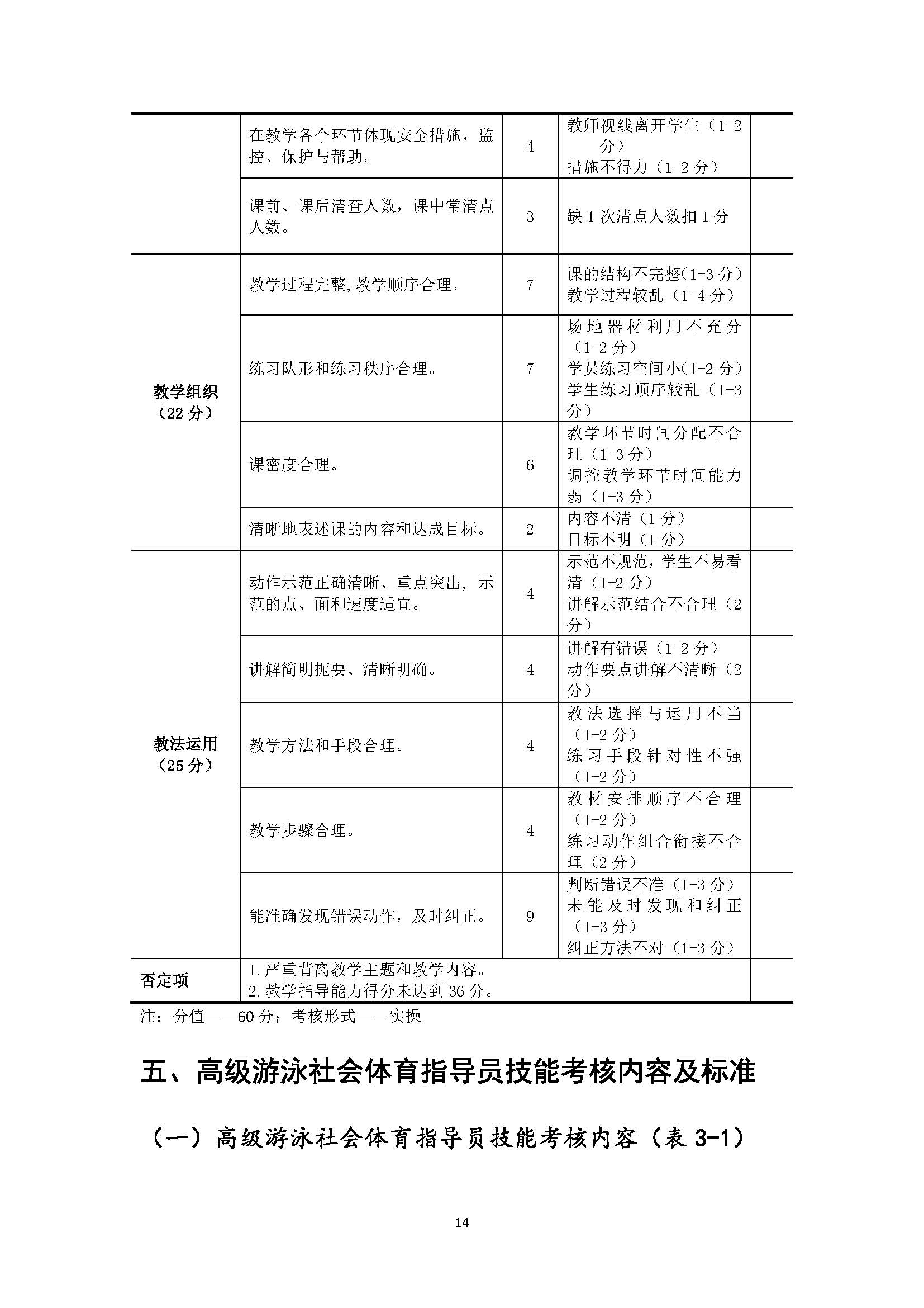 (一)初级游泳社会体育指导员技能考核内容(表1-1)
