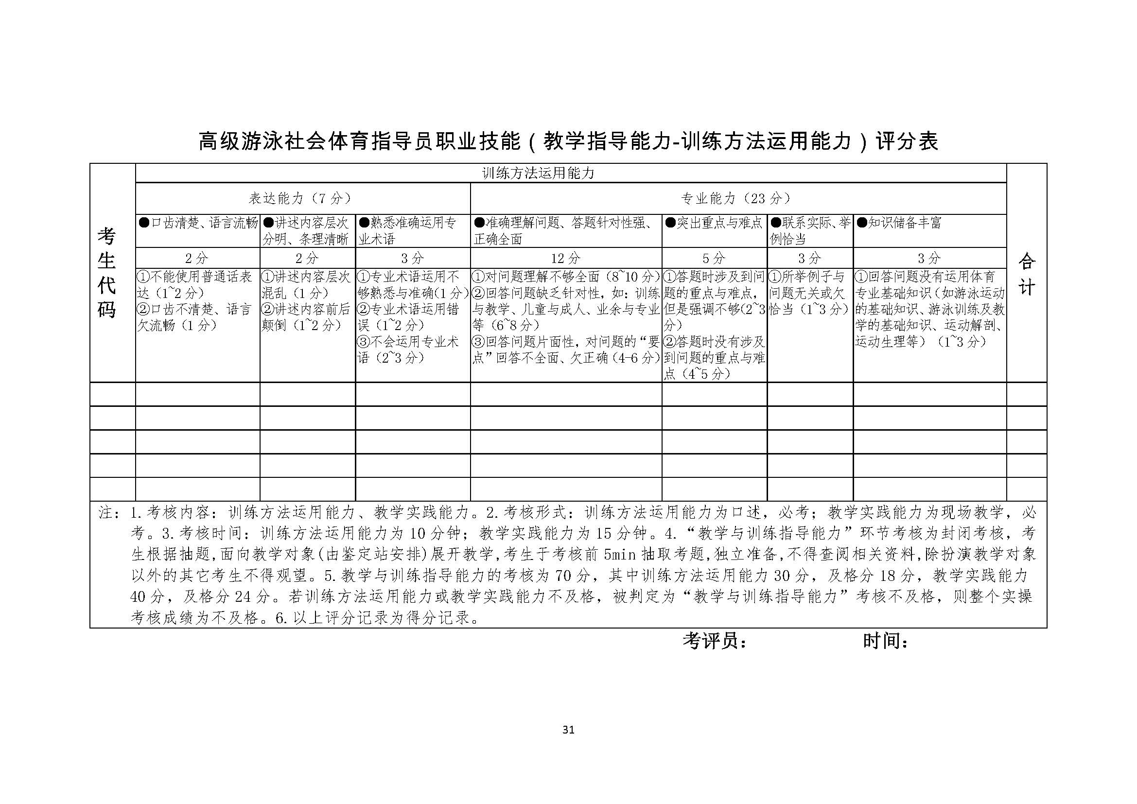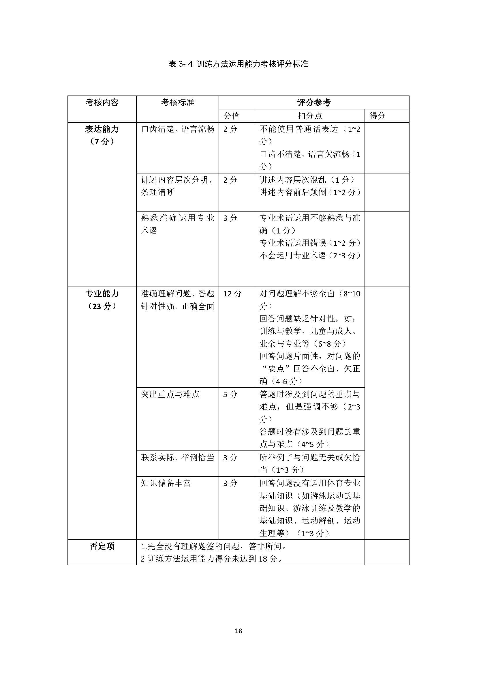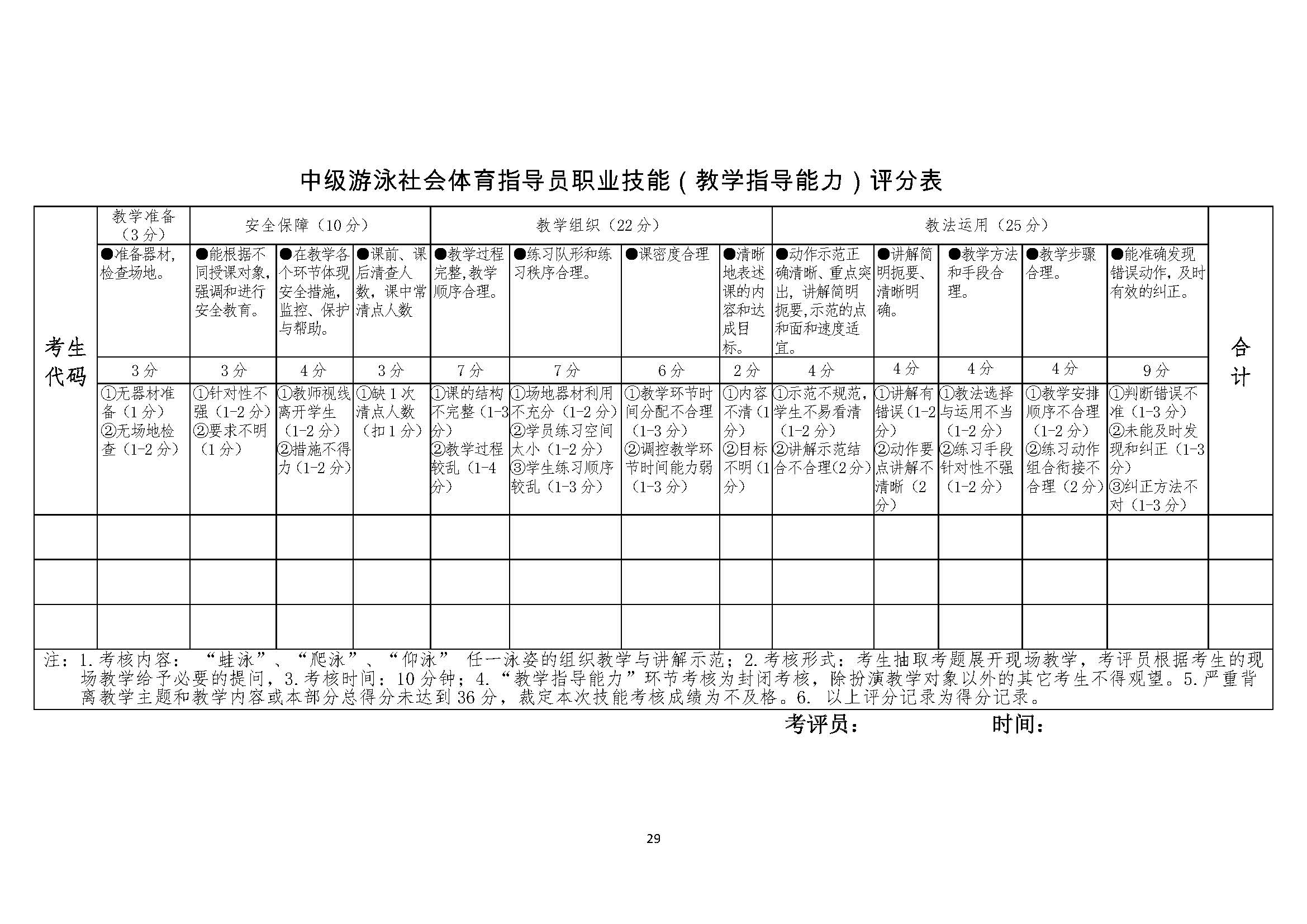 注: “教学指导能力”的考核为50分,及格为30分,“教学指导能力”考核不及格者,整个实操考核成绩为不及格。
