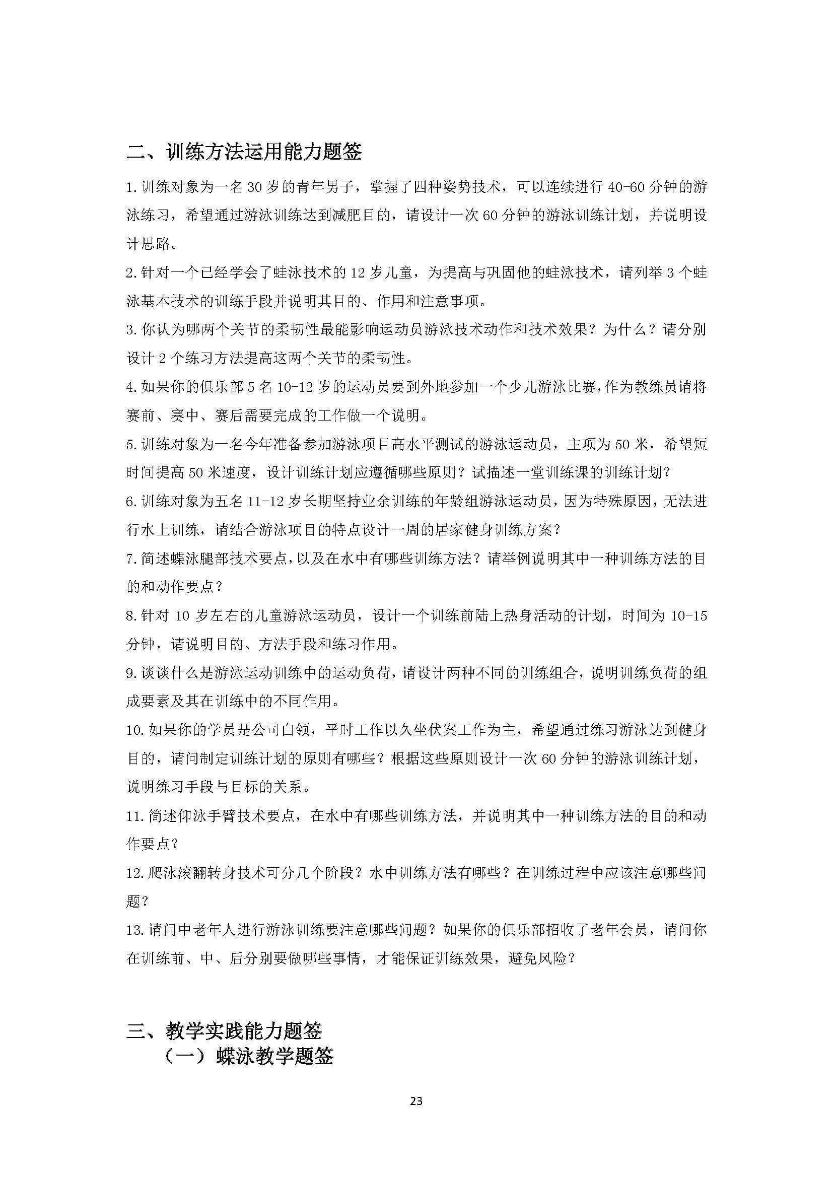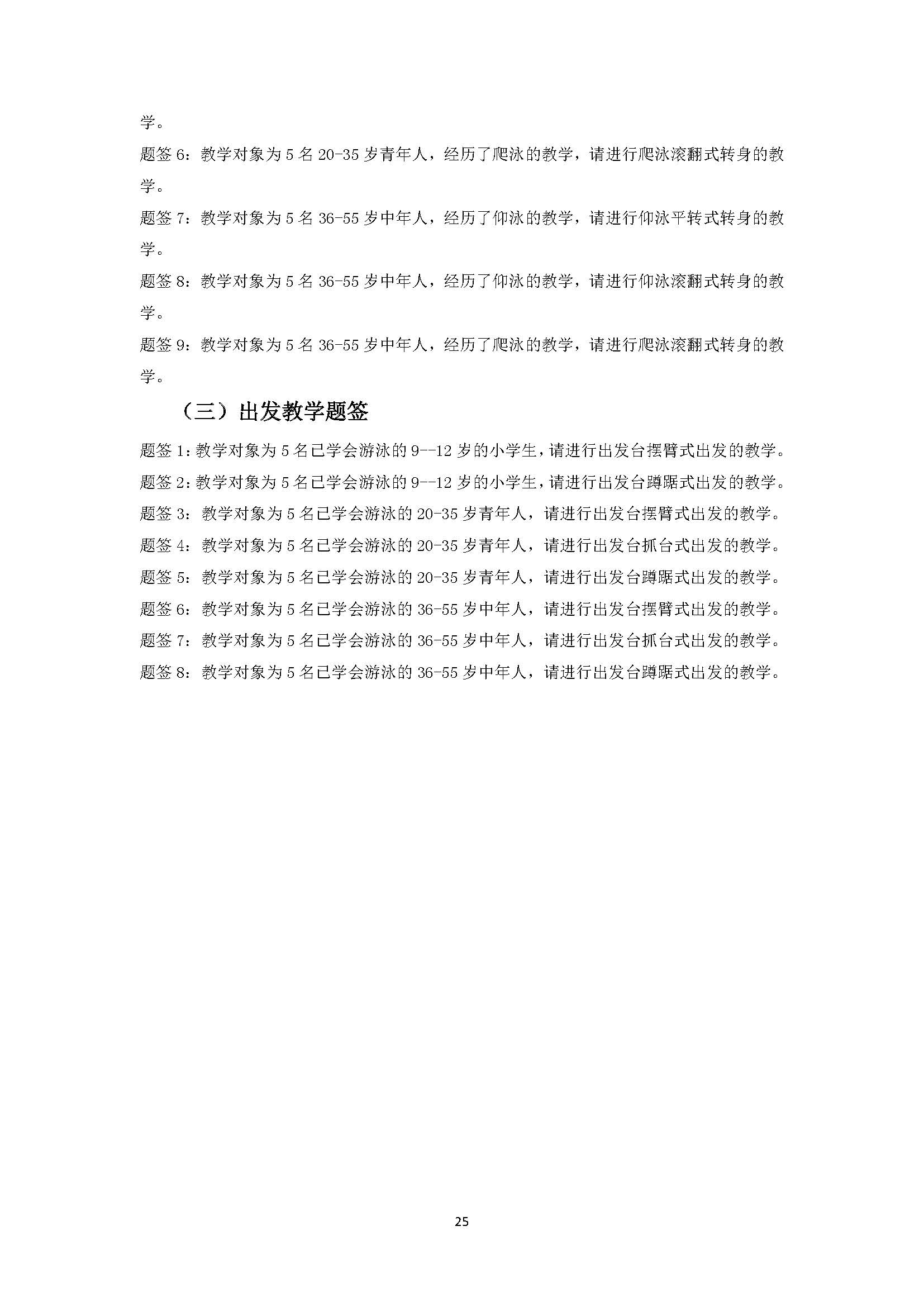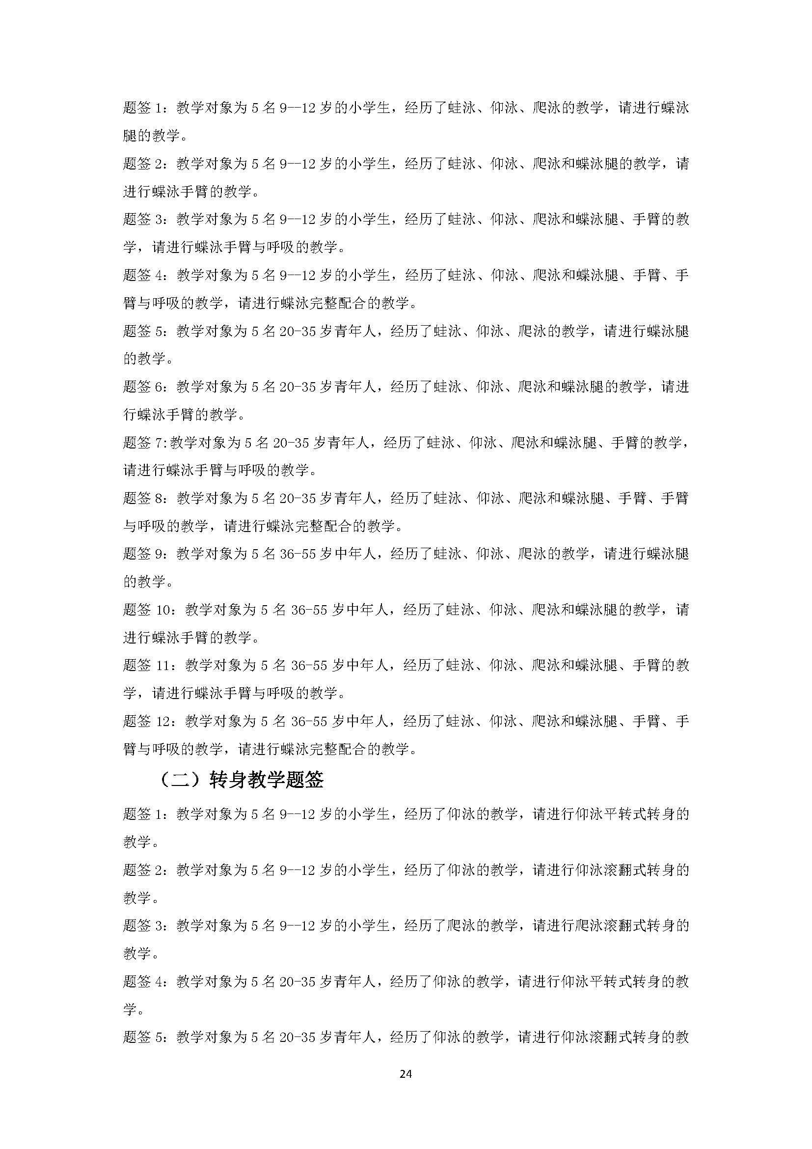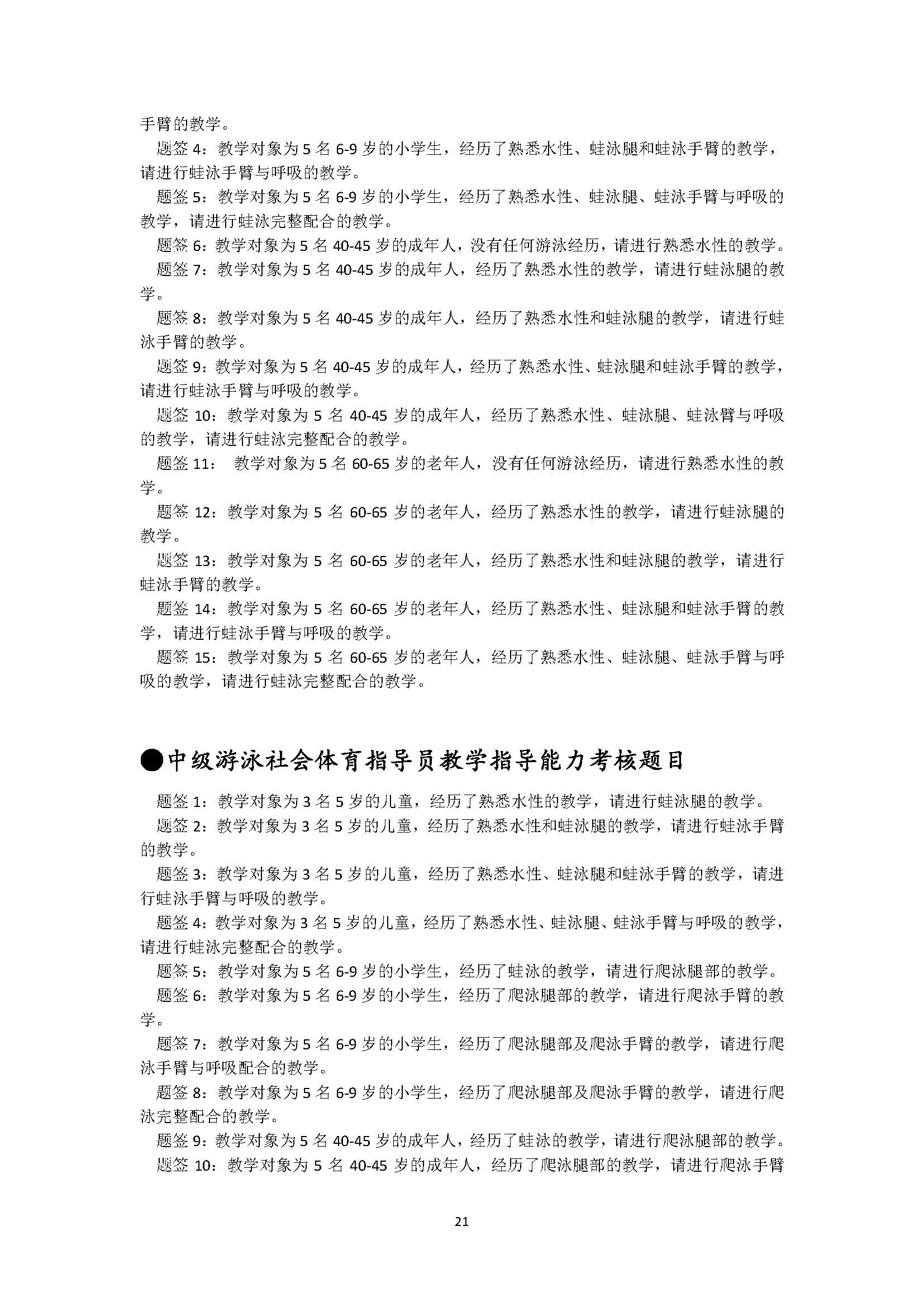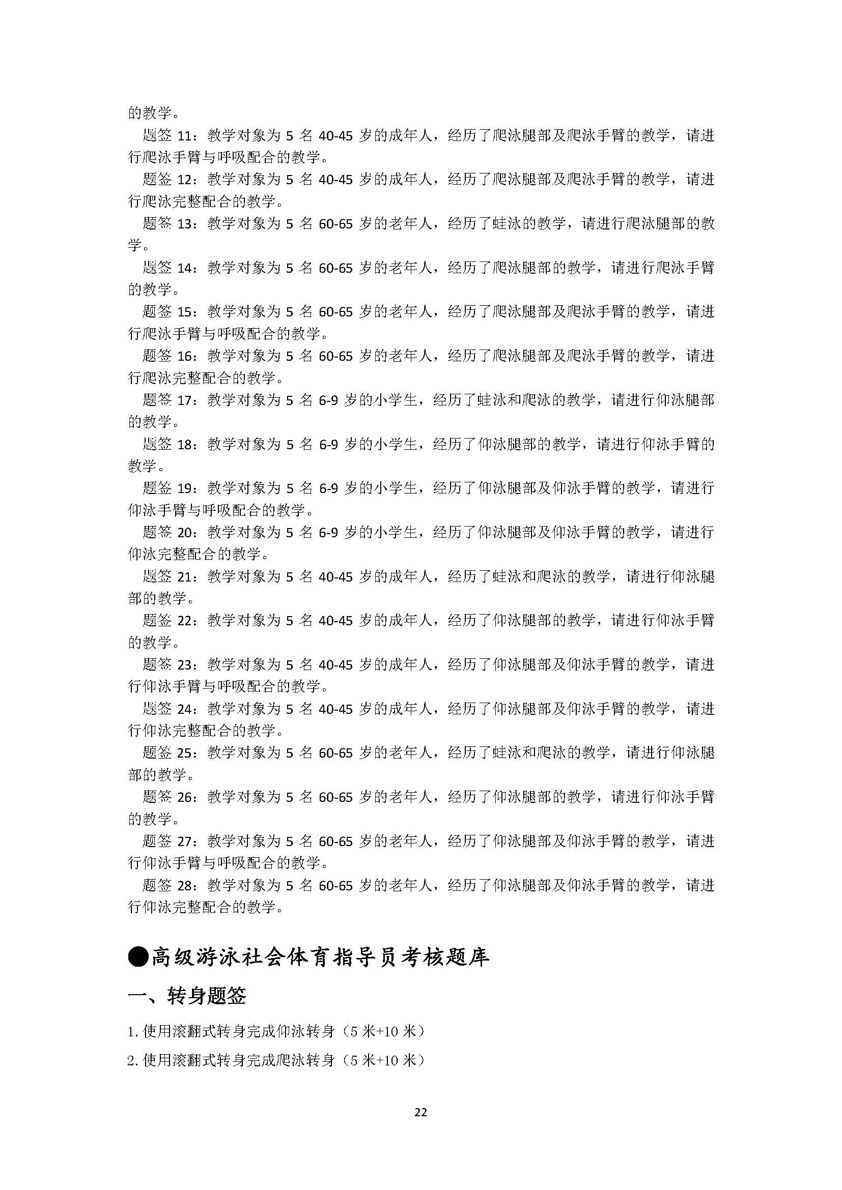 初级游泳社会体育指导员教学指导能力考核题签(15题)