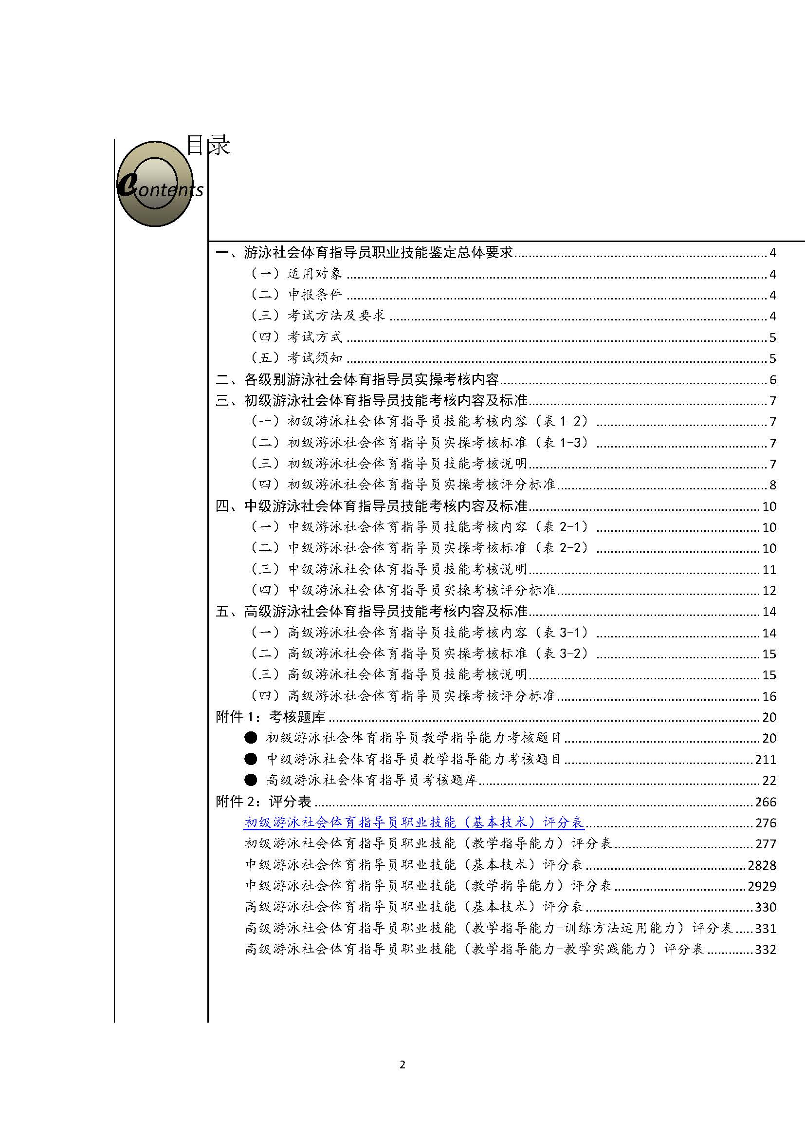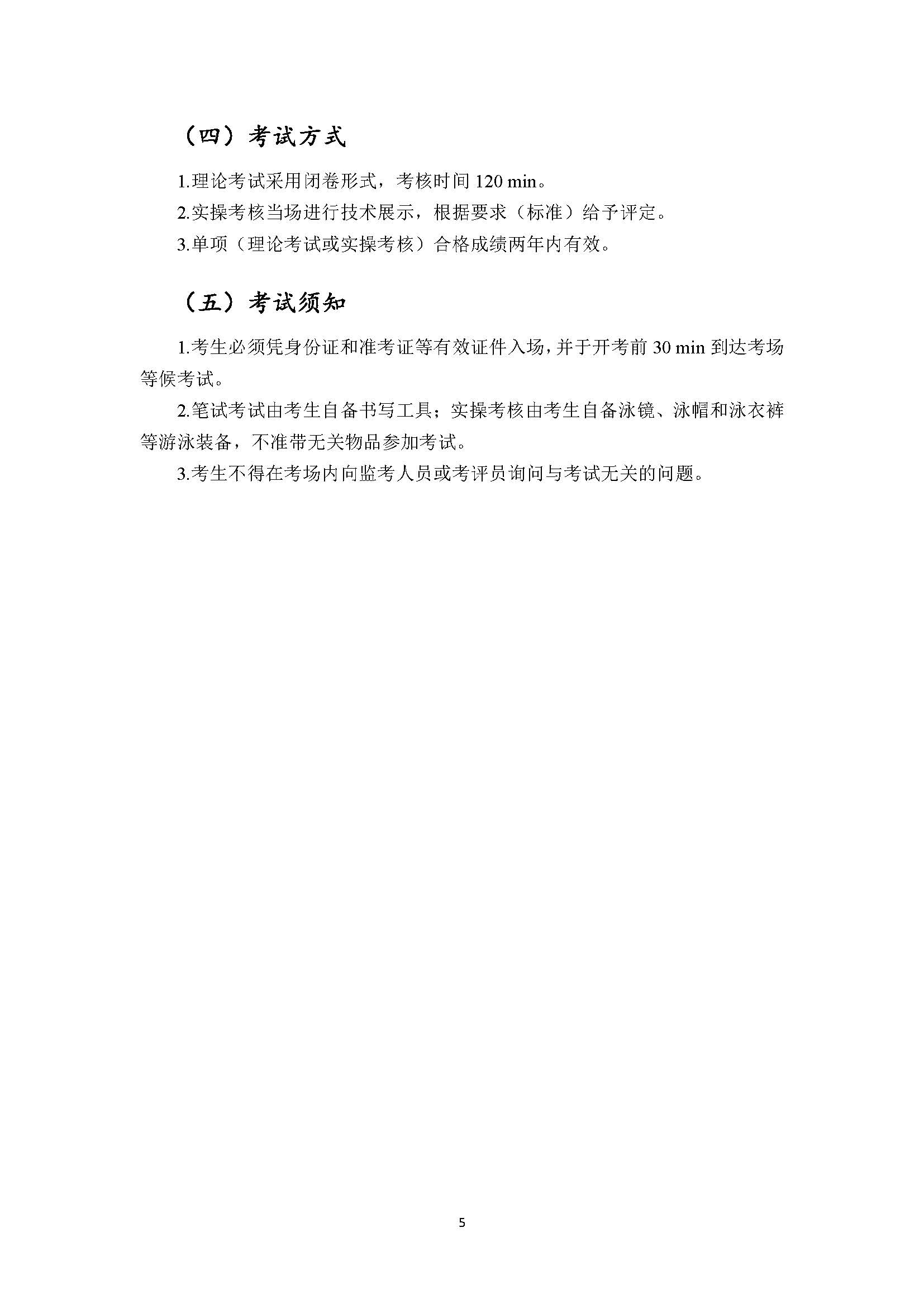 3.理论考试内容:“社会体育指导员公共理论”和“游泳专项理论”。