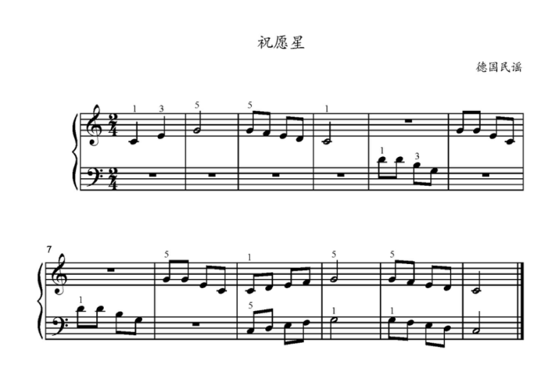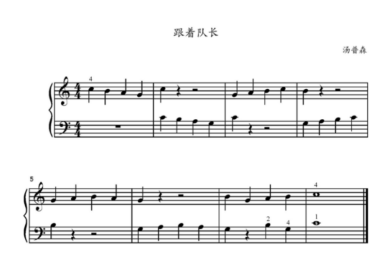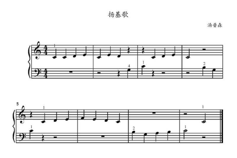 演奏提示:本曲左右手的衔接要紧凑。注意第4小节和最后一小节的二分音符,弹奏时一定要弹足2拍。